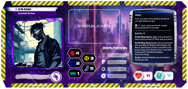 Dystopia 99 is a card based role-playing game set in a rich and deeply textured cyberpunk universe.